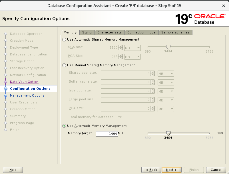 Select database storage location. Here, I am using file system where data, control, redo, and temp files will be stored. The default location would be $ORACLE_BASE/oradata/DB_UNIQUE_NAME